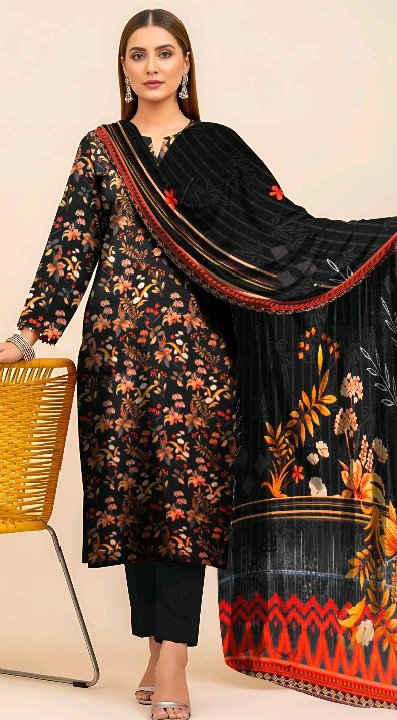 Elegant Black Printed Linan Suit – Winter Collection