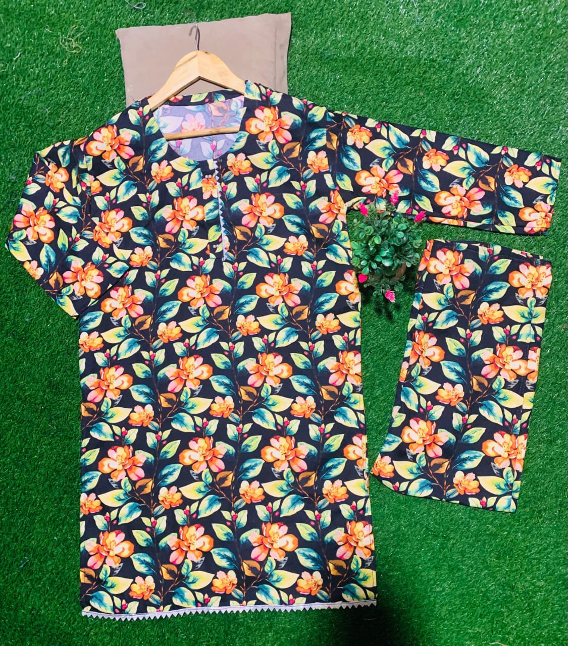 Bring charm and color to your winter style with this beautiful floral printed khaddar suit. Crafted from soft, warm, and durable khaddar fabric, itβs perfect for keeping you cozy and stylish throughout the season. The vibrant floral design on a deep navy background adds a fresh and elegant touch, making it ideal for both casual and semi-formal wear.