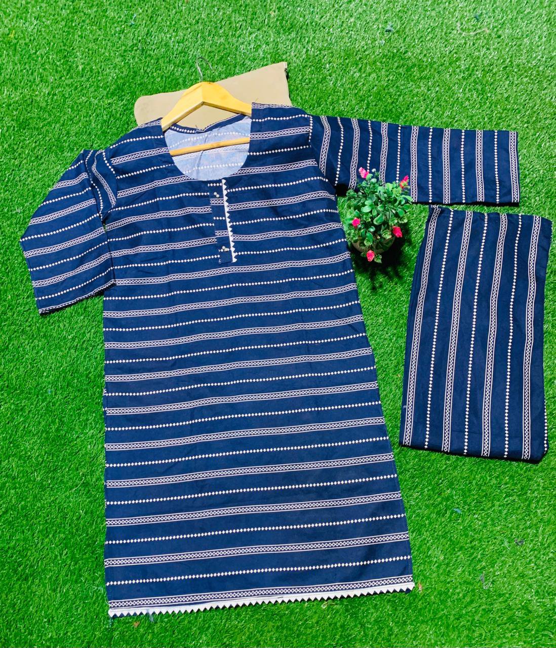 Be the first to review “Elegant Navy Blue Striped Khaddar Suit 💙✨”