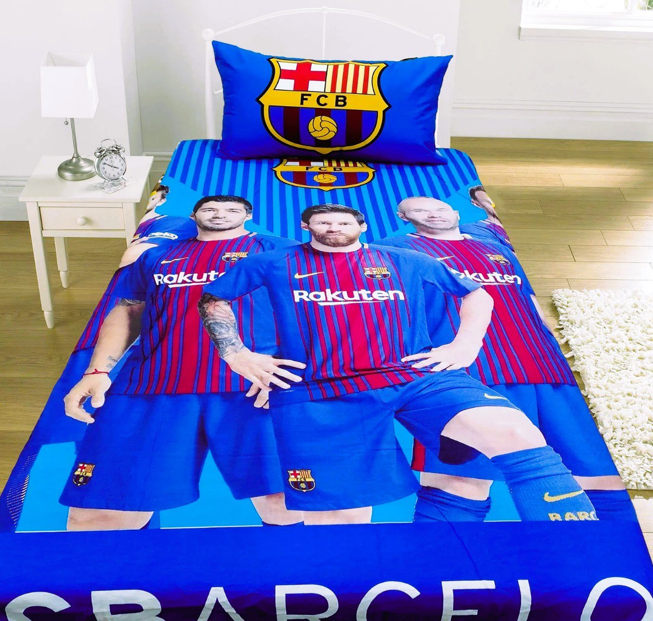 Bring the magic of Camp Nou to your bedroom with this FC Barcelona “Barça Legends” Single Bed Set! Featuring iconic players in the club’s famous blue and red stripes, along with the official FCB crest, this bedding is perfect for any true fan of the beautiful game.