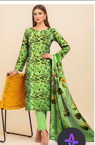 Refresh your wardrobe with this vibrant green slub linen 3-piece suit, designed to bring a lively touch to your winter look. The shirt features a beautiful leafy print in rich shades of green and mustard, paired with a matching digital printed dupatta that adds a graceful flow to the outfit. A solid dyed trouser completes the elegant ensemble.
