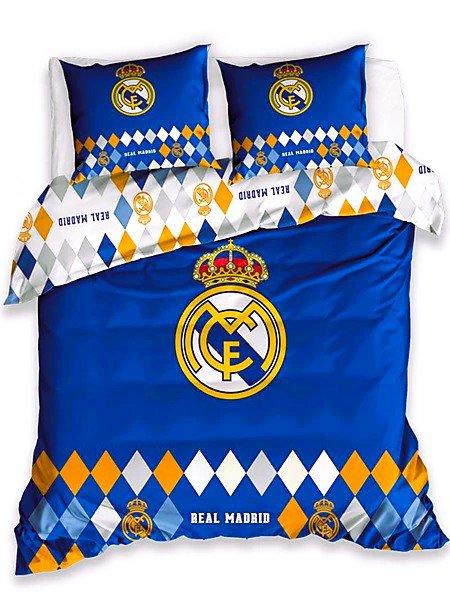 Show your passion for football in style with this Real Madrid double bed set, designed for true fans of the legendary club. Featuring the official Real Madrid crest and a bold diamond pattern in royal blue, gold, and white, this bedding set brings elegance and team spirit to any bedroom.